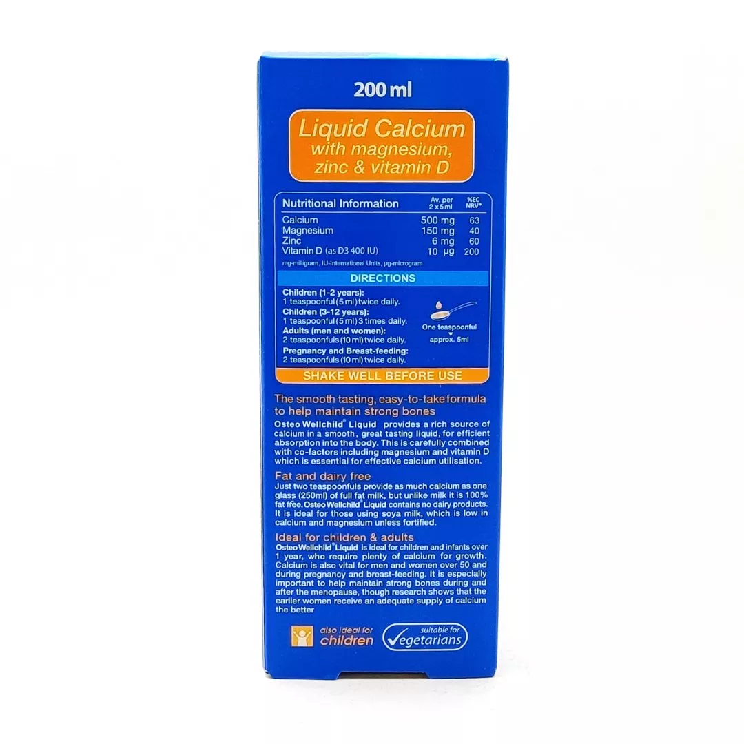 برای کودکان ۴ تا ۱۲ سال روزانه ۵ میلیلیتر از استئو ول چایلد ویتالوژیک بعد از غذا مصرف شود. برای جذب بهتر، استفاده منظم روزانه ضروری است. قبل از مصرف بطری را تکان دهید.