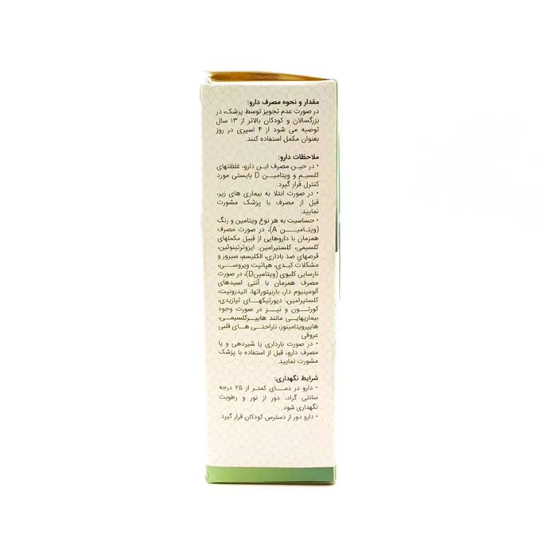 ویتامین D3: برای جذب کلسیم، حفظ سلامت استخوانها و دندانها و تقویت عملکرد سیستم ایمنی ضروری است.