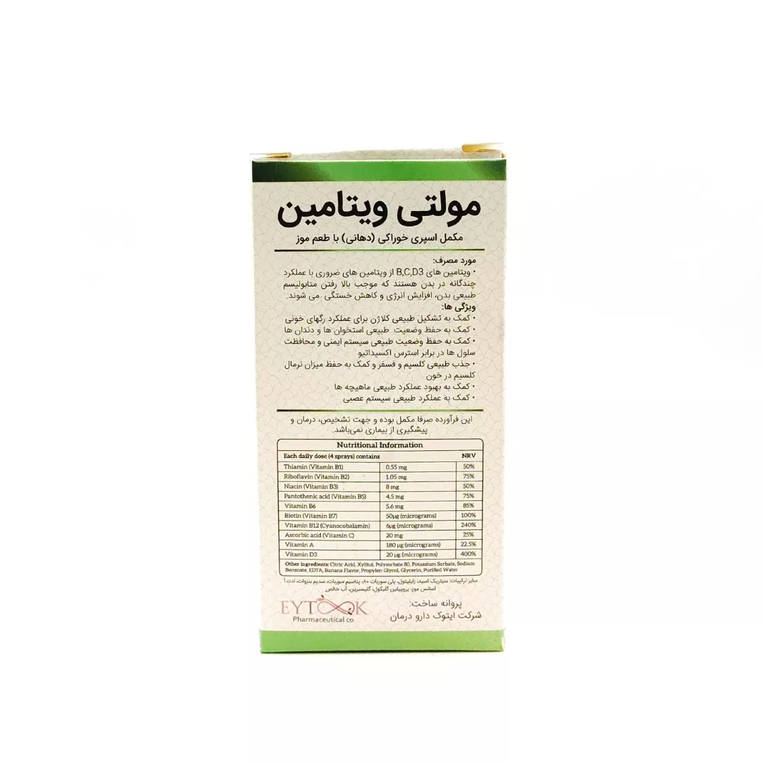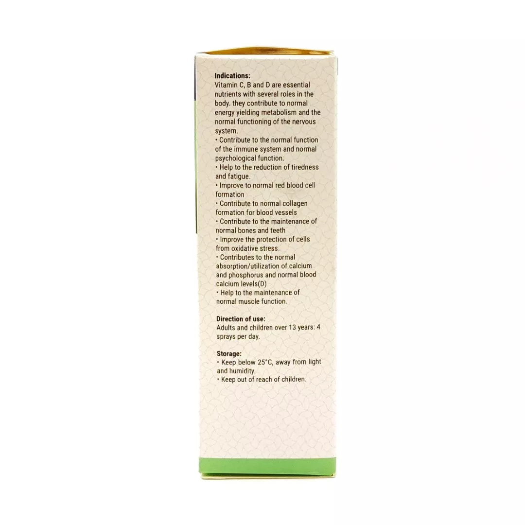 این اسپری حاوی مجموعهای از ویتامینهای ضروری برای عملکردهای حیاتی بدن است: