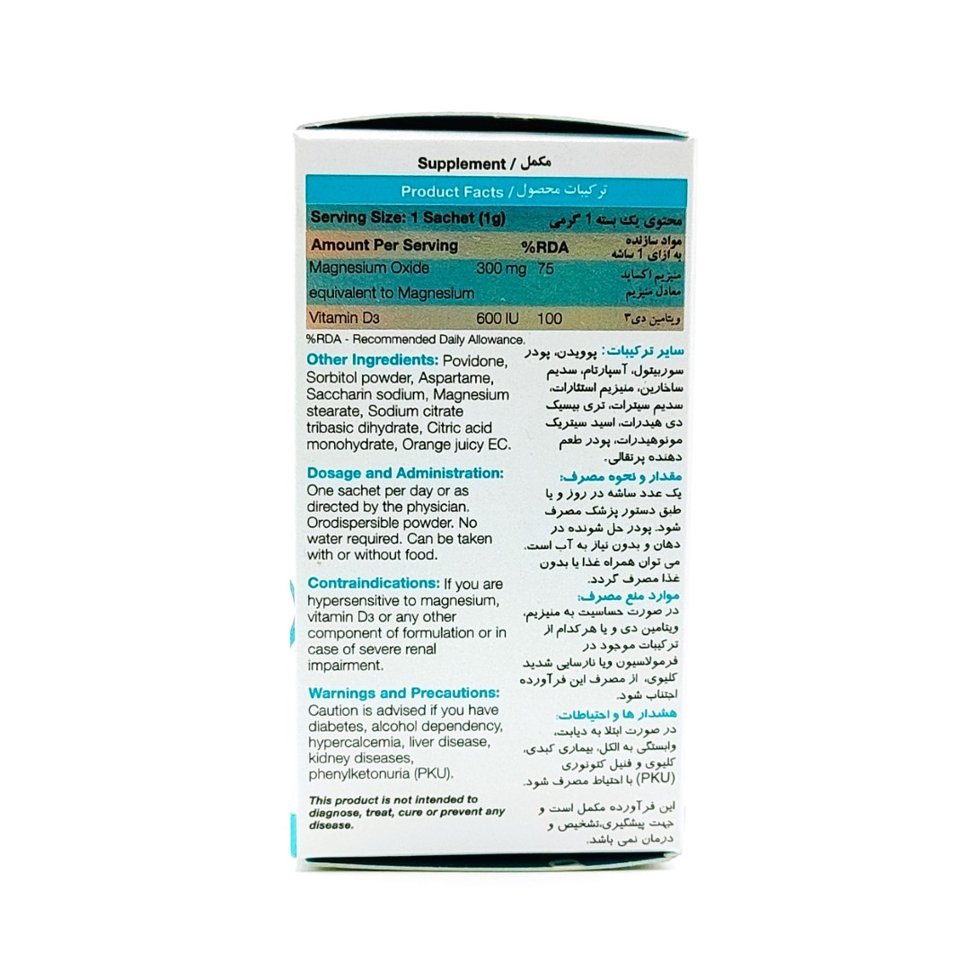 • ویتامین D3: این ویتامین جذب کلسیم و منیزیم را در بدن افزایش می‌دهد. وجود ویتامین D در کنار منیزیم، تراکم استخوان‌ها را بالا برده و سیستم ایمنی بدن را تقویت می‌کند.