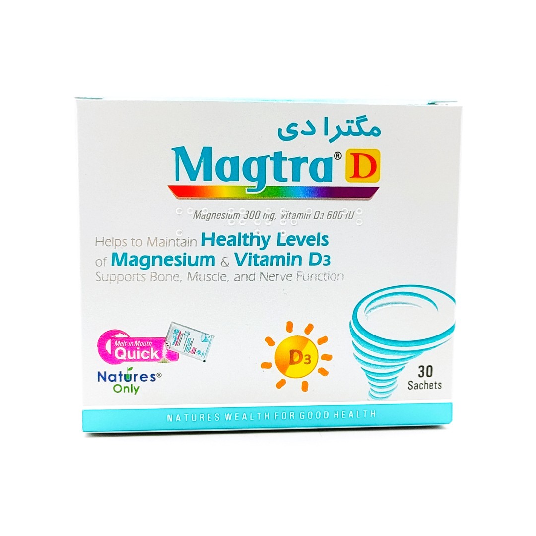 ساشه مگترا دی نیچرز اونلی (Magtra-D) محصولی تخصصی برای جبران کمبود منیزیم و ویتامین D در بدن است. کمبود این مواد معدنی می‌تواند منجر به گرفتگی عضلات، بی‌خوابی و ضعف عمومی شود. این مکمل به لطف فرم ساشه‌ای (پودری)، جذب بسیار سریعی در دستگاه گوارش دارد. استفاده از این محصول نه تنها عملکرد سیستم عصبی را بهبود می‌بخشد، بلکه در پیشگیری از پوکی استخوان نیز نقشی کلیدی ایفا می‌کند.