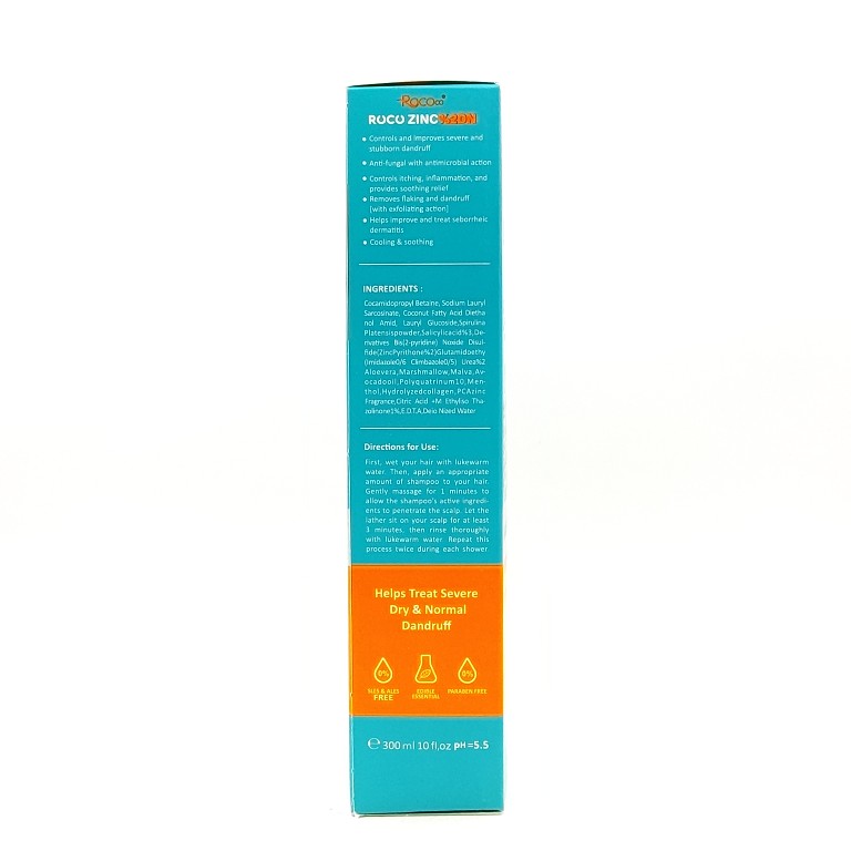 زینک پیریتیون ۲% (Rocozinc): این ماده، ترکیب درمانی اصلی و بسیار قوی است. با خواص ضد قارچی و ضد باکتریایی، به طور موثر عامل ایجاد شوره را کنترل و از بین میبرد.