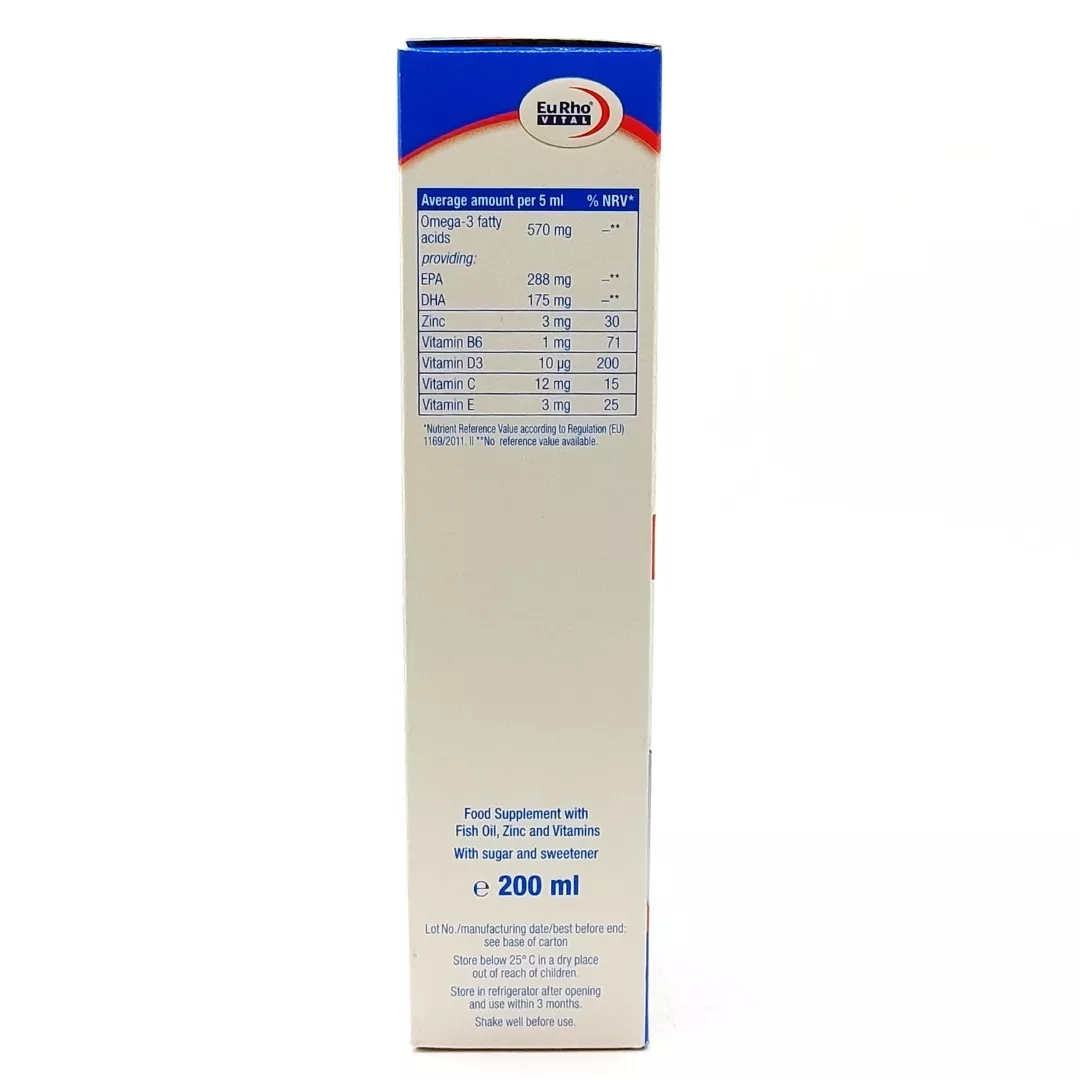 شربت امگا ۳ پلاس زینک کیدز یوروویتال ترکیبی منحصربهفرد از امگا ۳، روی (زینک) و ویتامینهای ضروری را در اختیار کودکان بالای ۴ سال و بزرگسالان قرار میدهد تا رشد ذهنی، عملکرد یادگیری و سیستم ایمنی را تقویت کند.