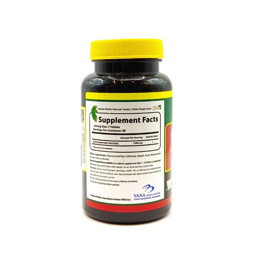 ال کارنیتین تارتارات (۱۰۰۰ میلیگرم): شکل بسیار پایدار و با جذب سریع ال کارنیتین که نقش اصلی را در حمل چربیها به درون سلول برای تولید انرژی ایفا میکند.