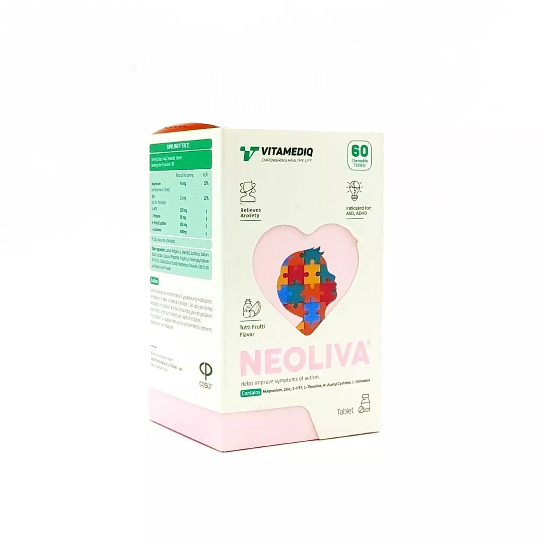 قرص جویدنی نئولیوا ویتامدیک یک مکمل تغذیهای تخصصی با فرمولاسیون منحصربهفرد است که برای حمایت از عملکرد سیستم عصبی و بهبود عملکردهای شناختی طراحی شده است. این محصول به طور ویژه به بهبود علائم اختلالاتی مانند کمتوجهی-بیشفعالی (ADHD)، اوتیسم (ASD) و اضطراب در کودکان و بزرگسالان کمک میکند.