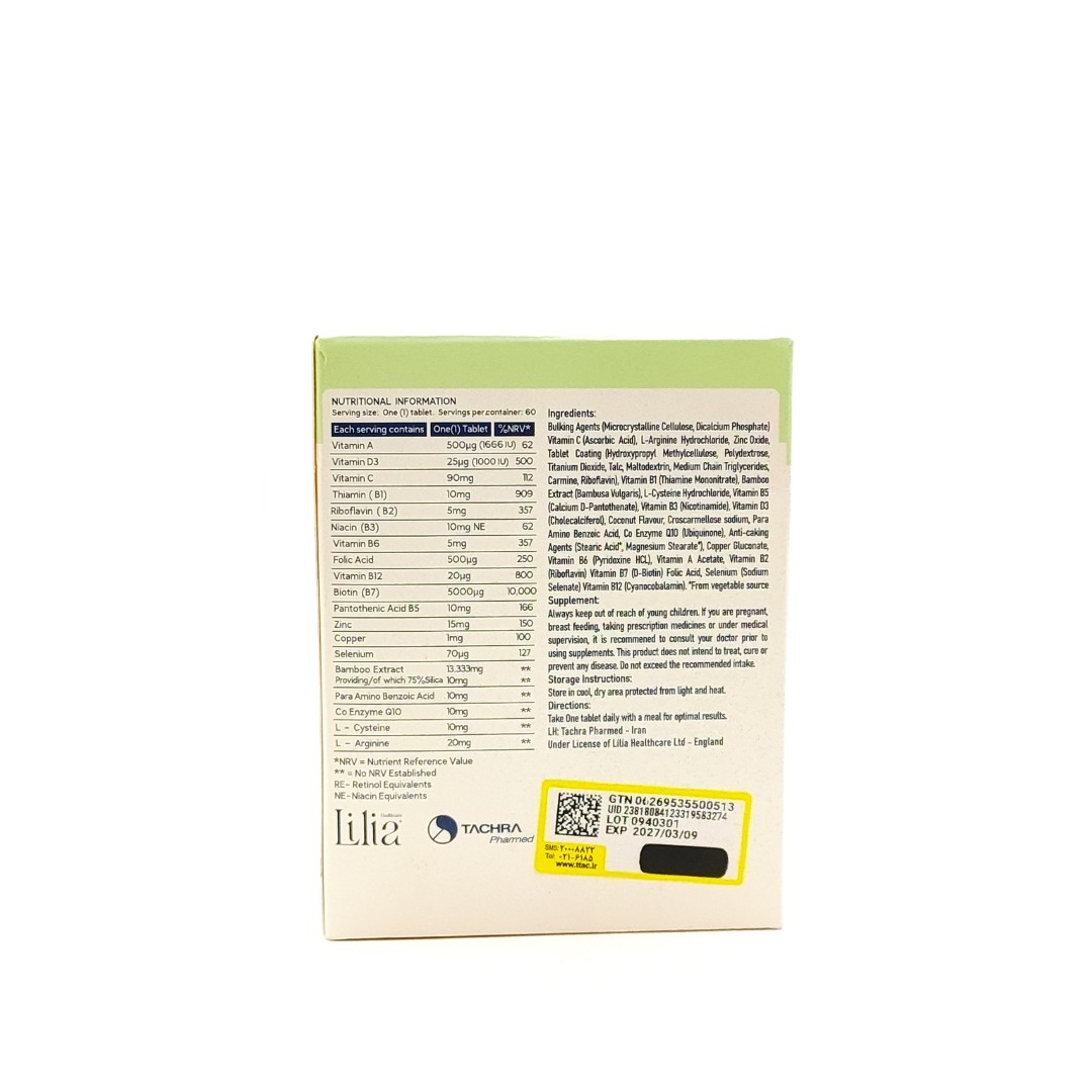 اثربخشی قرص لیلیادرماکر تچرا فارمد نتیجه همافزایی ویتامینها و مواد معدنی زیر است: