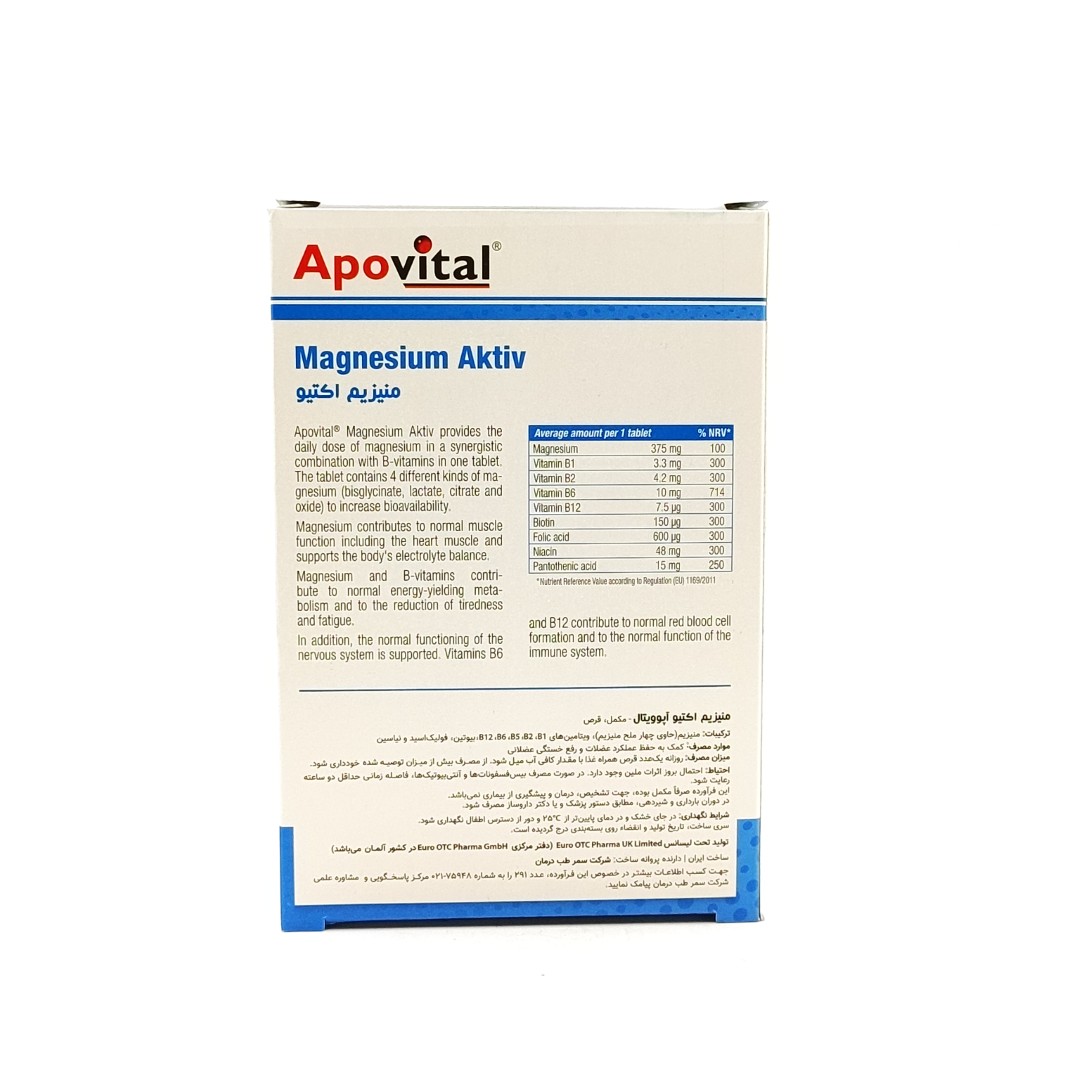 اثرگذاری عمیق قرص منیزیم اکتیو آپوویتال مدیون ترکیب دقیق مواد زیر است:
