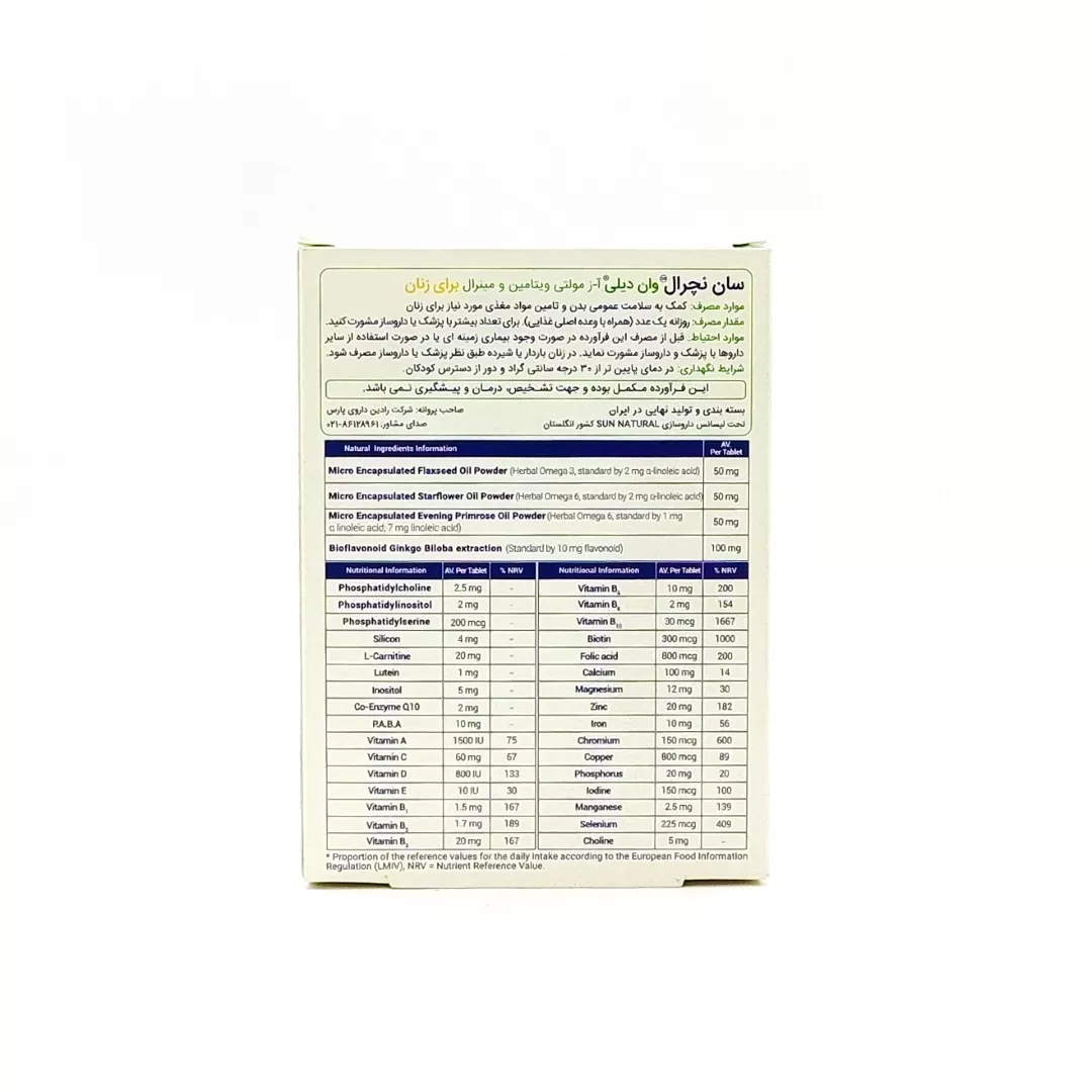 قرص مولتی ویتامین و مینرال وان دیلی بانوان سان نچرال: انرژی روزانه شما