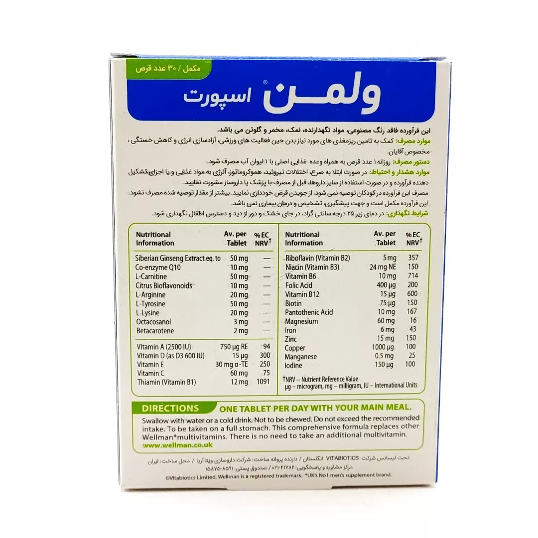قرص ول من اسپرت ویتابیوتیکس مخصوص آقایان ۳۰ عددی: تقویت انرژی، عضله و عملکرد ورزشی