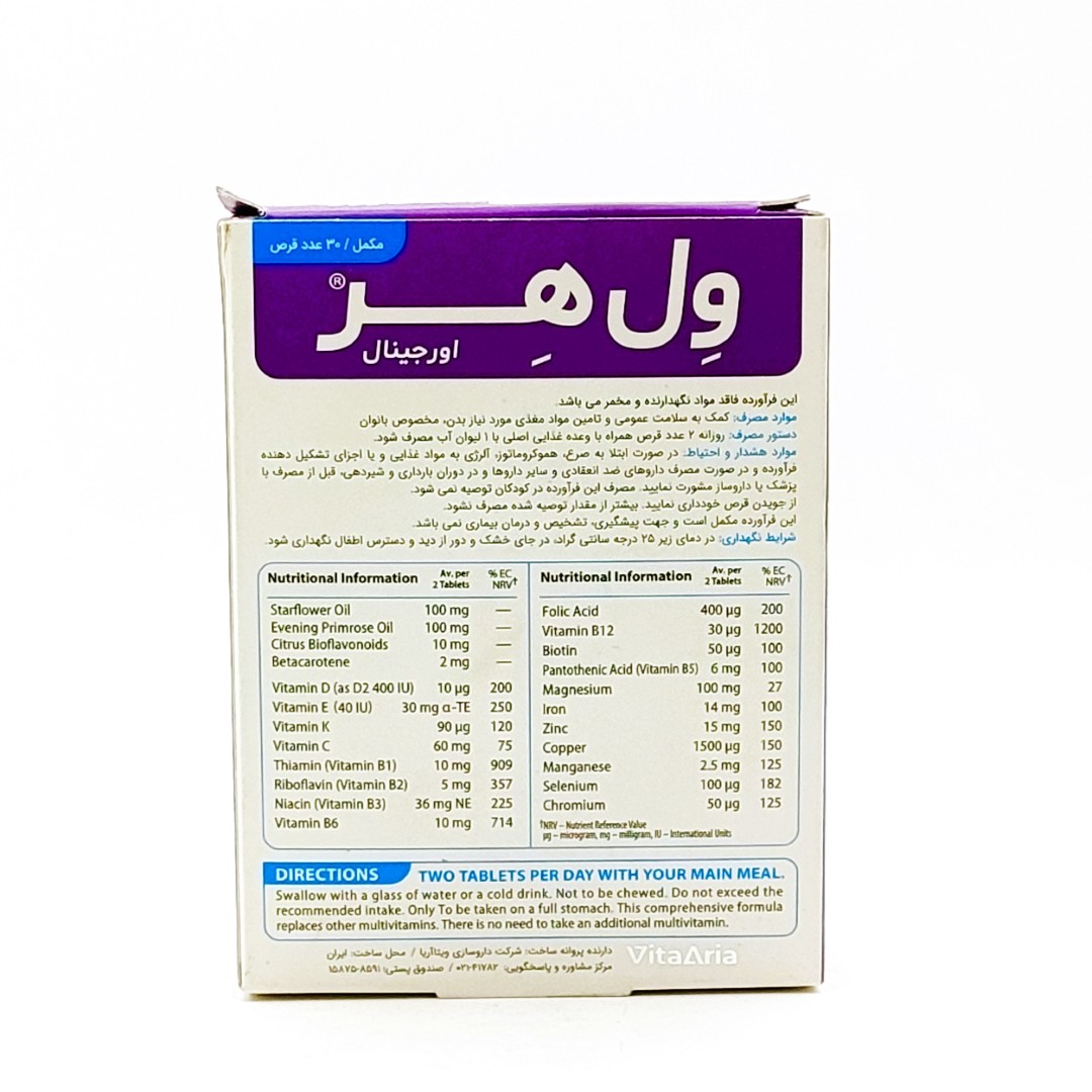 اثرگذاری بالای قرص ول هر اورجینال ویتالوژیک به دلیل وجود ترکیبات مغذی و استانداردی است که در ادامه بررسی میکنیم: