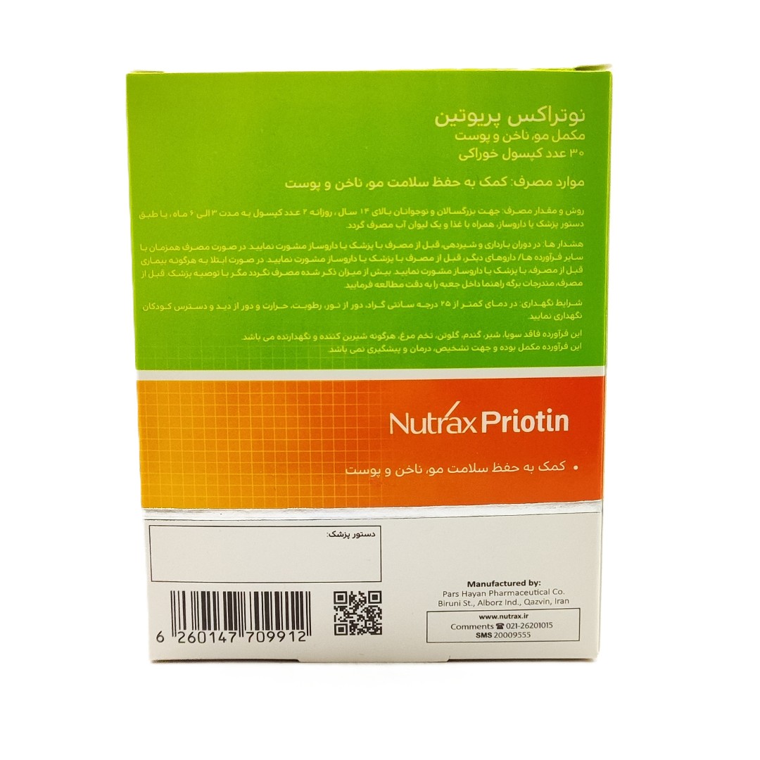 برند نوتراکس (Nutrax) این محصول را با بالاترین استانداردهای کیفی تولید می‌کند. مصرف منظم این مکمل نه تنها ریزش را متوقف می‌سازد، بلکه به مرور زمان باعث افزایش ضخامت ساقه مو می‌شود. همچنین، تاثیرات مثبتی بر استحکام ناخن‌ها و شادابی پوست دارد.