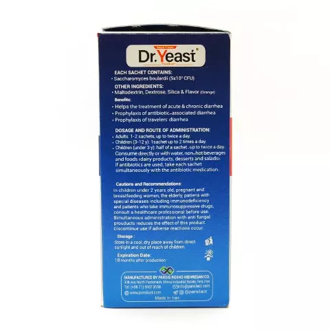 ❓ آیا مخمر پروبیوتیک دکتر ییست باعث عفونت قارچی میشود؟ پاسخ: خیر، ساکارومایسس بولاردی یک مخمر غیربیماریزا است. این مخمر به طور طبیعی از بدن عبور میکند و در روده کلونی دائمی تشکیل نمیدهد.