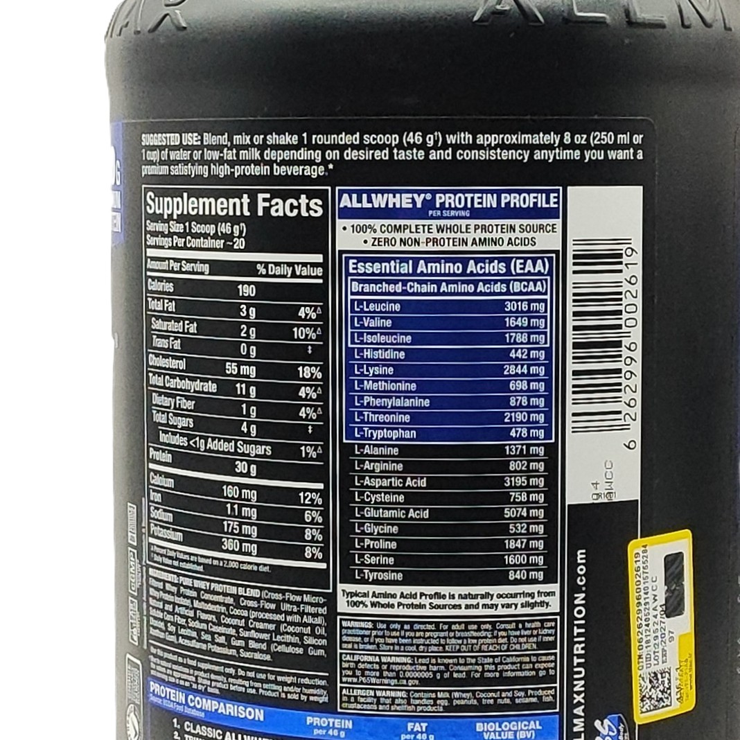 ترکیبات اصلی و مواد تشکیلدهنده پروتئین وی کلاسیک آل مکس