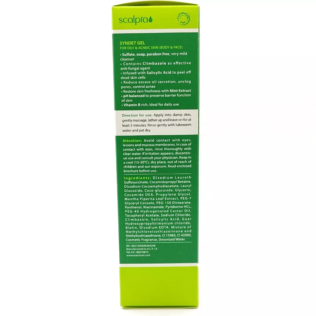ژل شوینده پوست چرب اسکالپیا یک پاککننده غیر صابونی (سیندت) است که pH سازگار با پوست دارد. صابونهای معمولی پوست را قلیایی و مستعد جوش میکنند، اما این محصول تعادل طبیعی پوست را حفظ مینماید. این ژل علاوه بر صورت، برای رفع جوشهای بازو، سینه و کمر نیز معجزه میکند. ترکیبات آنتیباکتریال موجود در آن، باکتریهای مولد آکنه را از بین میبرند و ظاهری مات و یکدست به چهره شما میبخشند.