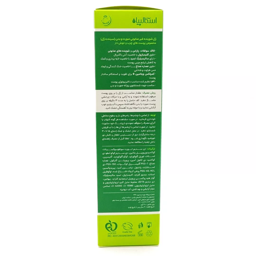 ژل شوینده غیر صابونی صورت و بدن پوست چرب اسکالپیا: کنترل چربی و درمان آکنه