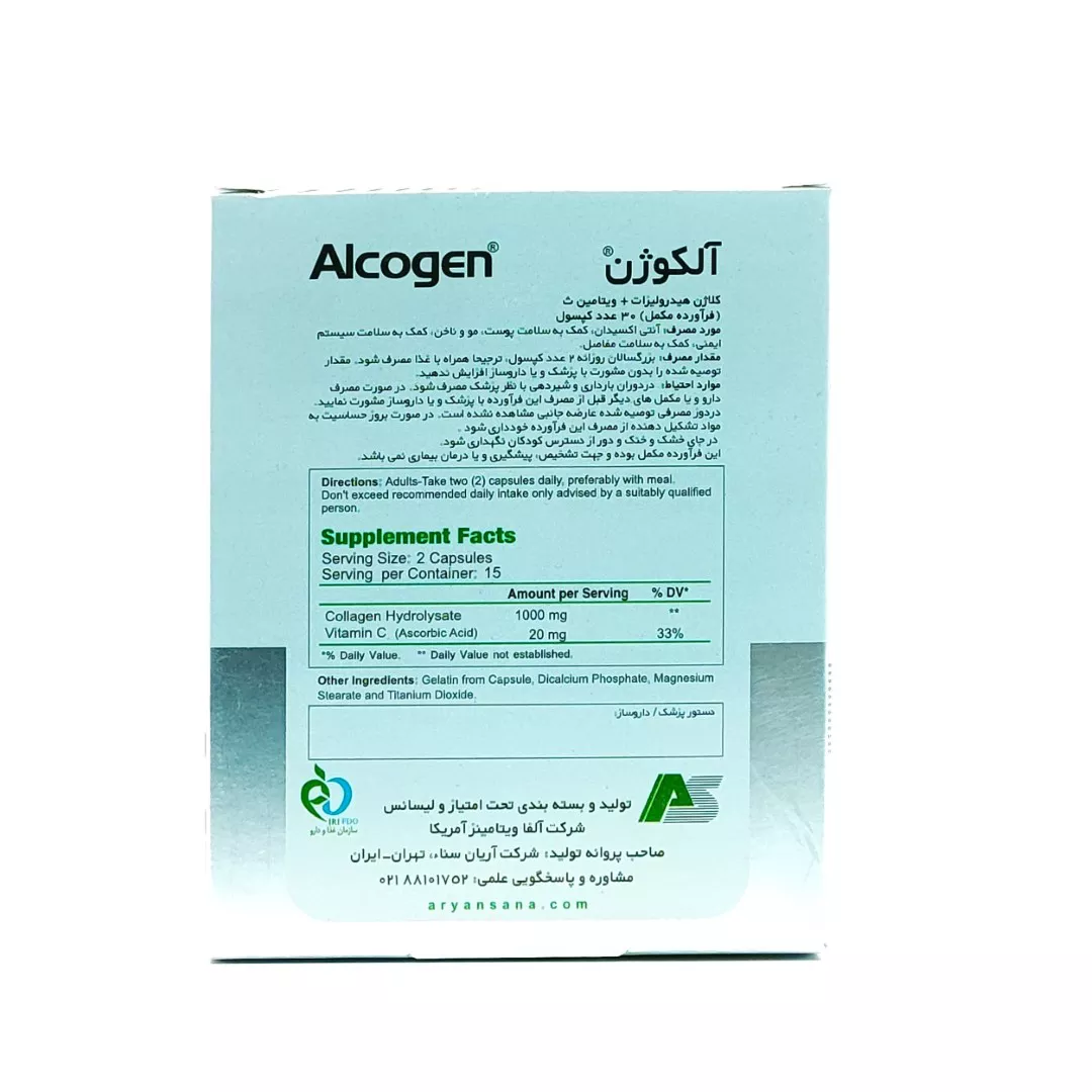 کپسول آلکوژن با ویتامین C آلفا ویتامینز: فرمول پیشرفته جوانی