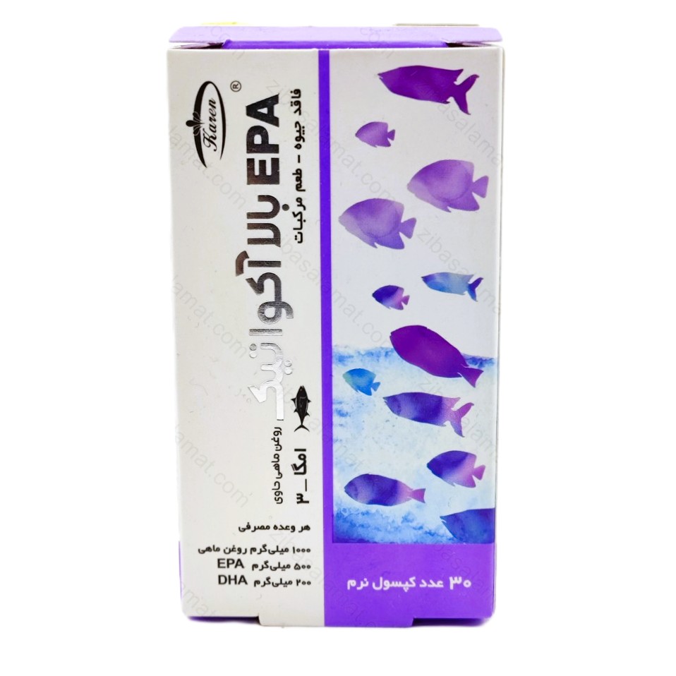 ایکوزاپنتانوئیک اسید (EPA): جزء اصلی این محصول که خاصیت ضدالتهابی بسیار قوی دارد. این اسید چرب به باز شدن عروق خونی و پیشگیری از سکته قلبی کمک میکند.