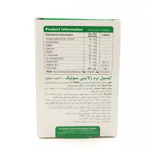برند معتبر ویواتیون (تحت لیسانس سوئیس)، کپسول ممولیک را برای ارتقای عملکرد شناختی مغز طراحی کرده است. این محصول به فرم سافت ژل (ژلاتینی نرم) تولید شده است. این ویژگی باعث بلع آسانتر و جذب سریعتر مواد موثره در بدن میشود. اگر دانشجو هستید یا در سنین میانسالی نگران سلامت حافظه خود میباشید، این محصول یک پشتیبان عالی برای ذهن شماست.